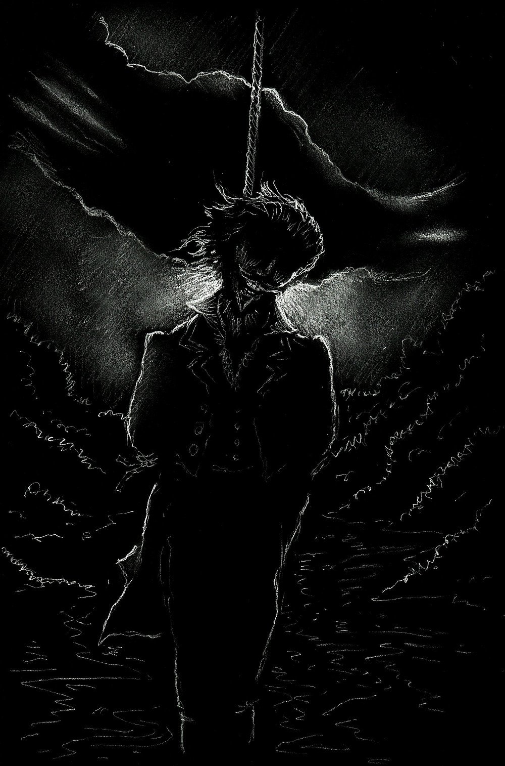 பாலத்தின் இடுக்குகள் வழியாக நேராகக் கீழே விழுகையில், பீட்டன் ஃபர்க்வார் தன்னிலை இழந்து ஏற்கெனவே இறந்து விட்டவன் போலத்தான் இருந்தான். அந்த நிலையிலிருந்து, பல யுகங்கள் கழித்துக் கண் விழித்தது போல அவனுக்குத் தோன்றியது. தொண்டையை அழுத்திய கூரிய வலியாலும் அதைத் தொடர்ந்து மூச்சுத் திணறல் ஏற்பட்டதாலும் அவனுக்குச் சுயநினைவு திரும்பியது. துடித்தெழும் வேதனை கழுத்திலிருந்து தொடங்கிக் கீழிறங்கி அவனுடைய உடல் மற்றும் மூட்டுகளின் ஒவ்வொரு இழையிலும் ஊடுருவியது. அந்த வலி சீரான கோடுகளில் கிளை பிரிந்து நினைத்துப் பார்க்கவே முடியாத அளவுக்கு அதிவேகமாகத் தாக்கியது. தளதளக்கும் நெருப்பாறு தாளமுடியாத சூட்டுக்கு அவனை வாட்டுவது போல அது இருந்தது. உடல் கனமாகி ஊதிப் போனவனாகவும் நெஞ்சடைத்துப் போனதைப் போலவும் உணர்ந்ததைத் தவிர வேறு எதுவும் அவன் நினைவில் இல்லை. இந்த உணர்ச்சிகள் அனைத்துமே சிந்தனையுடன் இணையவில்லை. அவனுடைய சிந்திக்கும் திறன், அவனை விட்டு ஏற்கெனவே வெளியேறி உணரும் சக்தி மட்டுமே மீதமிருந்தது. உணர்ந்ததெல்லாம் வேதனை, வேதனை மட்டுமே!. தான் அப்படியே நகர்ந்து கொண்டிருப்பதை அவனால் அறிந்து கொள்ள முடிந்தது. எங்கும் ஒளிவீசும் மேகங்கள் சூழ்ந்திருக்க, அதில் பருப்பொருளற்று, உருவமற்றுத் துடிக்கும் இதயமாக மட்டும் கற்பனைக்கெட்டாததொரு வளையத்தில் பெண்டுலம் போல ஊசலாடிக் கொண்டிருந்தான். அதன்பின் சட்டென்று அதி தீவிரவேகத்துடன் கூடிய நீர்த்தெறிப்பின் பேரோசை அவனைச் சூழ்ந்திருந்த ஒளி மீது பரவியது. அவன் காதுகளில் அச்சமூட்டும் கர்ஜனை நிரம்ப, எங்கும் குளிர்ச்சியும் இருட்டும் சூழ்ந்தது. அந்தக் கணத்தில் அவனது சிந்திக்கும் சக்தி மீண்டது. கயிறு துண்டிக்கப்பட்டு அவன் நீரோடையில் விழுந்ததை அறிந்து கொண்டான். வேறெந்த அழுத்தமும் இல்லை. கழுத்திலிருந்த சுருக்குக் கயிறு ஏற்கெனவே மூச்சைத் திணறடித்து நுரையீரல்களில் நீரை நிரப்பிக் கொண்டிருந்தது. நதியாழத்தில் சுருக்குக் கயிறால் இறுக்கப்பட்டு உயிரிழப்பது, அந்த எண்ணம் நகைப்புக்குரியதாக இருந்தது. மெதுவாகக் கண்களைத் திறந்து மேலே பார்த்த போது ஒரு ஒளிக்கீற்று தெரிந்தது. ஆனால் எவ்வளவு தொலைவு, அடைய முடியாத அளவு எவ்வளவு தூரம். அவன் மூழ்கிக் கொண்டிருந்தான், அந்த ஒளி கரைந்து வெறும் பளபளப்பாக மாறும் வரை மங்கலாகத் தெரிந்து கொண்டே இருந்தது. பின் மீண்டும் அது பிரகாசமாகத் தொடங்கிய போதுதான் நீரின் மேற்பரப்புக்கு உயர்கிறோமென்று அவனுக்குத் தெரிந்தது. தயக்கத்துடன் அதை உணர்ந்தான். “தூக்கிலிடப்பட்டும் மூழ்கியும் இறப்பதா? அது அவ்வளவு ஒன்றும் மோசமில்லை; ஆனால் நான் துப்பாக்கியால் சுடப்பட்ட