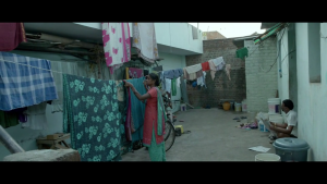 பின்னர் படலம் தொடர்கிறது. நகர்ந்துகொண்டிருக்கும் கேமரா ஒரு மாடிப்படியை அணுகுகிறது. அங்கே படிகளில் உட்கார்ந்திருக்கும் பையன்கள் தென்னாலிராமன் பற்றிய பாடங்களை படித்துக் கொண்டிருக்கிறார்கள். தென்னாலிராமன் நகைச்சுவைக்கும் அறிவுக்கூர்மைக்கும் பெயர்பெற்றவர். அவர் சமூகத்தின் சுயநலத்தையும் பேராசையையும் விமர்சித்த 16ம் நூற்றாண்டு கவிஞர். பிறகு (சட்டகத்திற்கு வெளியேயுள்ள) அருகாமையிலுள்ள ஒரு மனிதன் இந்து வேத ஆகமங்களில் பயிற்சி பெற்றவர்கள் நியமனம் என்ற செய்தியை படித்துக்கொண்டிருக்கிறான். நகர்ந்து கொண்டிருக்கும் காமிரா வலதுபுறம் திரும்பும்போது ஒரு இளம்பெண் அங்கு மாட்டப்பட்டிருக்கும் கம்பியில் துணியை காயவைத்துக் கொண்டிருக்கிறாள். வாசலில் உட்கார்ந்திருக்கும் ஒருவன் சுனிதா வில்லியம்ஸ் போஸ்டன் பந்தயத்தில் பங்குகொள்வது பற்றிய செய்தியை உரக்க வாசித்துக் கொண்டிருக்கிறான். நகரும் காமிரா இடதுபுறம் ஒரு சிறிய அறையின் நுழைவாயிலில் வந்து நிற்கும்போது நடக்கும் உரையாடலுடன் இந்த நெடுநேரம் ஓடக்கூடிய ஷாட்டுகள் நிறைந்த காட்சி முடிவடைகிறது. இறுதியில் இளங்கோ பொதுக்கழிப்பிடம் குறித்த அதிர்ச்சியையும் மறுப்பையும் தெரிவிக்கும்போது வீட்டுத்தரகர் இவ்வாறு கூறுகிறார்: “நீங்கள் கொடுக்கும் பணத்துக்கு இவ்வளவுதான் எதிர்பார்க்கமுடியும்.”