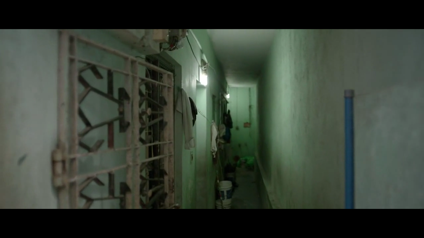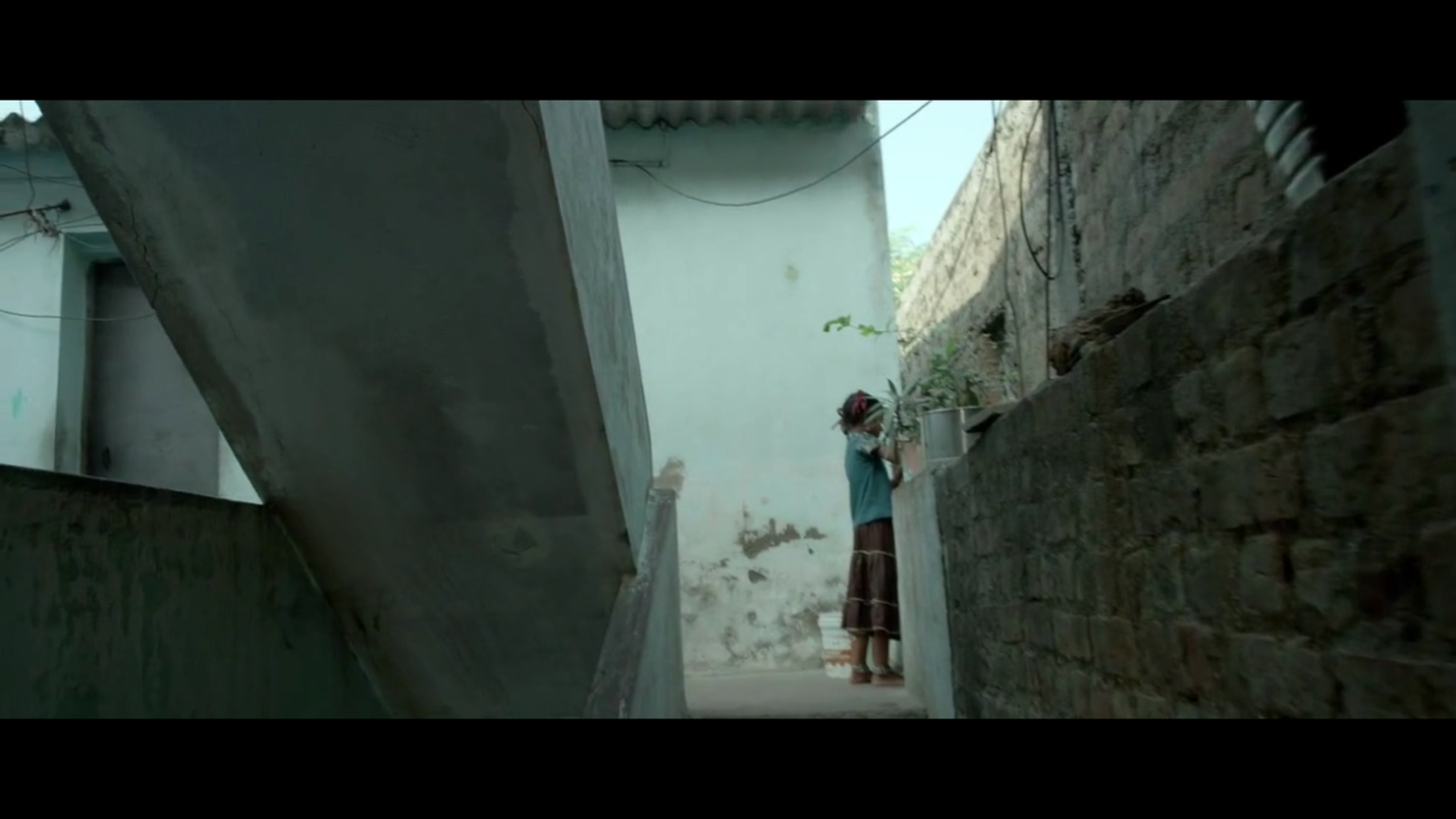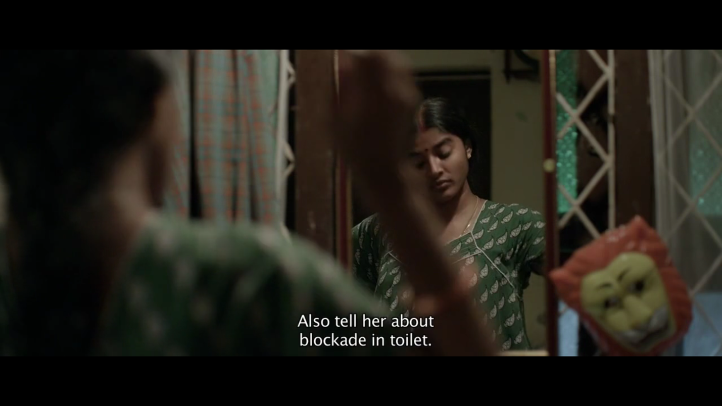 பின்னர் படலம் தொடர்கிறது. நகர்ந்துகொண்டிருக்கும் கேமரா ஒரு மாடிப்படியை அணுகுகிறது. அங்கே படிகளில் உட்கார்ந்திருக்கும் பையன்கள் தென்னாலிராமன் பற்றிய பாடங்களை படித்துக் கொண்டிருக்கிறார்கள். தென்னாலிராமன் நகைச்சுவைக்கும் அறிவுக்கூர்மைக்கும் பெயர்பெற்றவர். அவர் சமூகத்தின் சுயநலத்தையும் பேராசையையும் விமர்சித்த 16ம் நூற்றாண்டு கவிஞர். பிறகு (சட்டகத்திற்கு வெளியேயுள்ள) அருகாமையிலுள்ள ஒரு மனிதன் இந்து வேத ஆகமங்களில் பயிற்சி பெற்றவர்கள் நியமனம் என்ற செய்தியை படித்துக்கொண்டிருக்கிறான். நகர்ந்து கொண்டிருக்கும் காமிரா வலதுபுறம் திரும்பும்போது ஒரு இளம்பெண் அங்கு மாட்டப்பட்டிருக்கும் கம்பியில் துணியை காயவைத்துக் கொண்டிருக்கிறாள். வாசலில் உட்கார்ந்திருக்கும் ஒருவன் சுனிதா வில்லியம்ஸ் போஸ்டன் பந்தயத்தில் பங்குகொள்வது பற்றிய செய்தியை உரக்க வாசித்துக் கொண்டிருக்கிறான். நகரும் காமிரா இடதுபுறம் ஒரு சிறிய அறையின் நுழைவாயிலில் வந்து நிற்கும்போது நடக்கும் உரையாடலுடன் இந்த நெடுநேரம் ஓடக்கூடிய ஷாட்டுகள் நிறைந்த காட்சி முடிவடைகிறது. இறுதியில் இளங்கோ பொதுக்கழிப்பிடம் குறித்த அதிர்ச்சியையும் மறுப்பையும் தெரிவிக்கும்போது வீட்டுத்தரகர் இவ்வாறு கூறுகிறார்: “நீங்கள் கொடுக்கும் பணத்துக்கு இவ்வளவுதான் எதிர்பார்க்கமுடியும்.”