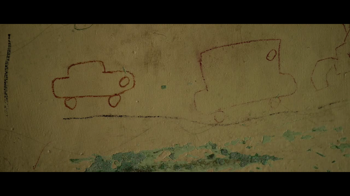 அடுத்ததாக டிவியில் Bresson இன் Pickpocket படத்திலிருந்து ஒரு காட்சி வருகிறது. அதில் நாயகன் ஒரு கூட்டத்தை நெருங்குகிறான். கதவுமணி அடிக்கவும் அந்தக் காட்சி உறைந்து போகிறது. பிறகு சித்தார்த் தான் வரைந்த ஓவியத்திலுள்ள வீட்டில் “டு லெட்” என்ற அட்டையையும் சேர்க்கிறான். இதற்கு முன்னர் (திமிர் நிறைந்த) வீட்டுக்காரரால் அழுக்கான சுவர்களுக்காக அமுதாவை திட்டி அந்த ஓவியம் நசுக்கப்பட்டு சுவற்றில் இருந்து பிடுங்கி எறியப்பட்டிருந்தது. பின்னர் இளங்கோ மனமுடைந்த சித்தார்த்தை மகிழ்விக்க தன்னுடைய துணிகளுக்கு இஸ்திரி போடும்போது அந்த கசங்கிய ஓவியத்தை இஸ்திரிப்பெட்டியின் மிதமான சூட்டைக்கொண்டு நேராக்கி சரிசெய்திருந்தான். பென்சிலாலும் வண்ணக்குச்சிகளாலும் வரையப்பட்ட சித்தார்த்தின் அந்த ஓவிய வீடு குடும்பத்தின் ஒற்றுமை மற்றும் எதிர்மறையான சமூகம் குறித்த ஒரு படிமம். சித்தார்த்தின் ஓவியங்கள் விளையாட்டுத்தனமும் புதியதை கற்கும் ஆர்வமும் கொண்ட குழந்தை மனதின் வெளிப்பாடு. ஆனால் வெளியே உள்ள ஒடுக்குமுறை சார்ந்த (பொருளாதார) சூழலால் அது பாதிக்கப்படுகிறது.