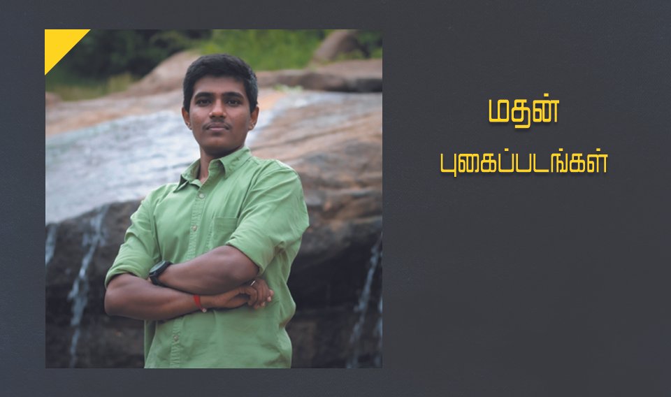 புகைப்படங்கள்மதன் புகைப்படங்கள்By கனலி - December 14, 2019WhatsAppFacebookTwitterTelegramEmail மதன், வேலூர் மாவட்டத்தை சார்ந்த இளைஞர். புகைப்படக்கலை மற்றும் இலக்கிய மாணவனான மதன் இயற்கை மற்றும் வனவிலங்குகளை புகைப்படமெடுப்பதன் மூலம் இயற்கை மற்றும் சுற்றுச்சூழல் குறித்தான விழிப்புணர்வுவை ஏற்படுத்த இயலும் என நம்பிக்கையோடு தெரிவிக்கிறார்.