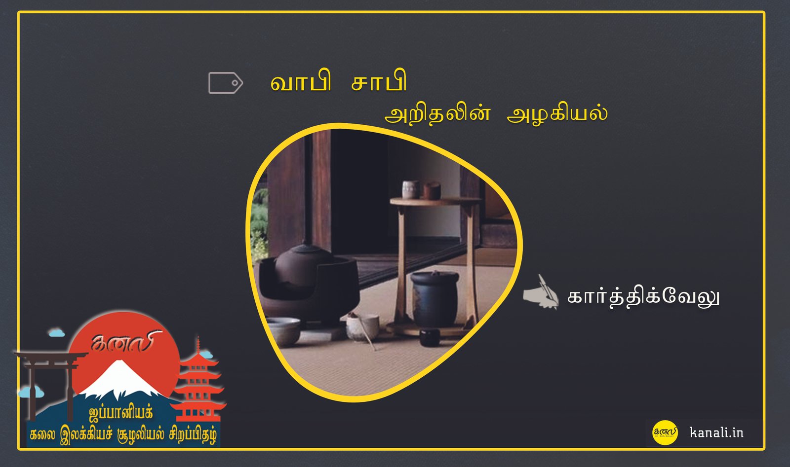 இப்படி முடிவுறாத பொருள் ஒன்றில் இயற்கை வந்து இணைவதை , அதில் காலத்தில் வடுக்கள் உருவாவதை , ஒரு பொருள் தொடர்ந்து காலத்தாலும் புழக்கத்தாலும் உருமாறுவதை , இந்த மொத்த நிகழ்விலும் உள்ளுறைந்திருக்கும் அழகையும் உணர கற்றுத்தருகிறது வாபி-சாபி.