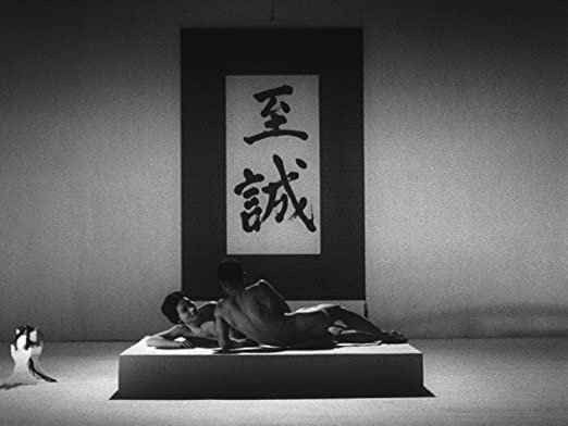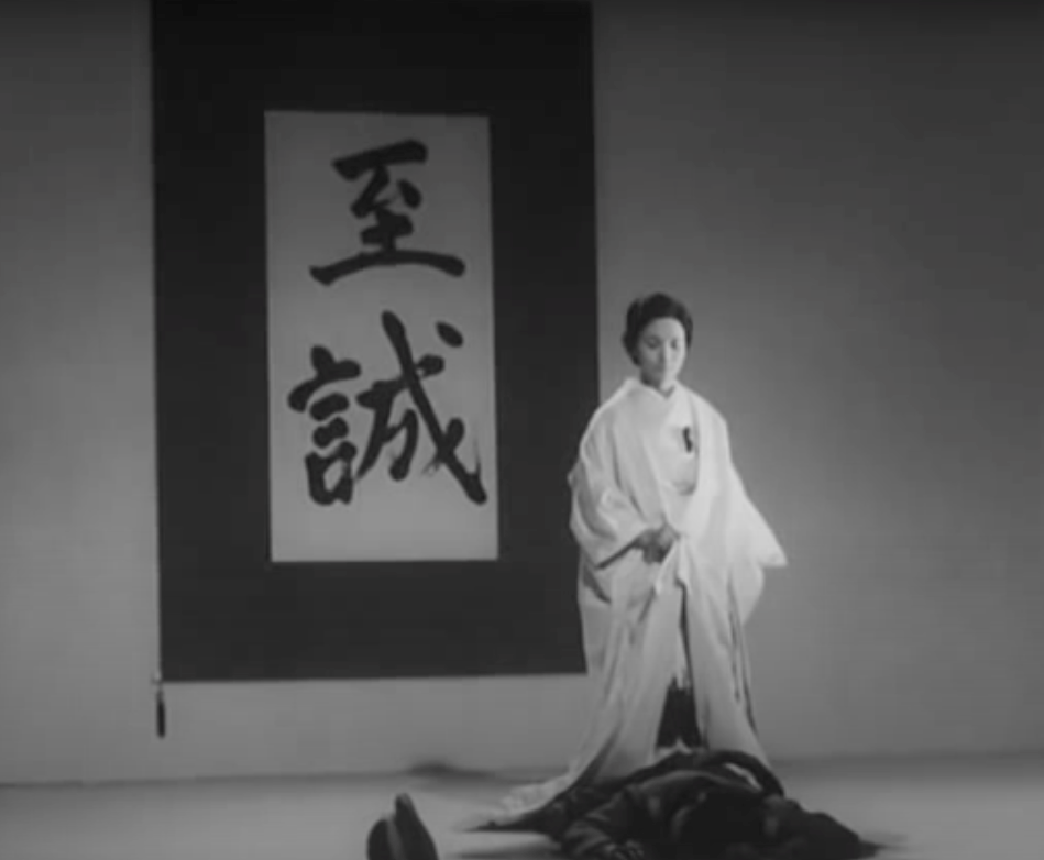 எழுத்தில் சாத்தியப்படாத சாயங்களைப் பூச காட்சி ஊடகம் மிஷிமாவுக்கு உதவுகிறது. அரங்கேறும் பலவற்றுக்கும் பின்னணியில் இருக்கும் ககெமோனோ சுருளைத்தான் எடுத்துக் கொள்வோம், அந்த ஏட்டுச்சுருளில் உள்ள இரு எழுத்துக்கள், “இதயப்பூர்வமான விசுவாசம்” என்ற சொற்களைக் குறிக்கின்றன என்று சொல்லப்படுகிறது, கதைக்கும் இதுவே நல்ல தலைப்பாகவும் இருந்திருக்கக்கூடும். ஐந்தாம் பகுதியின் துவக்கத்தில், ஷிஞ்சி கிட்டத்தட்ட செத்து விட்டான், ரெய்க்கிக்கு தூக்கித் தூக்கிப் போடுகிறது, அந்த கொடூரமான சடங்கு தலைநீராட்டின் முடிவில் வெடிக்கும் ரத்தத்தில் குளித்து அவள் அணிந்திருக்கும் வெள்ளாடை சிவப்பு பூண்டிருக்கிறது. ஏட்டுச்சுருளையும் அதையடுத்து வீழ்ந்து கிடக்கும் பிரேதத்தின் முன் துக்கம் மேவி நின்றிருக்கும் ரெய்க்கியையும் நேர்க்கோட்டில் இணைக்கும் ஒரு ஷாட் வருகிறது. அவள் ஆடையின் அடிப்பாகத்தில் உள்ள ரத்தக்கறை ஏட்டுச்சுருளில் உள்ள எழுத்துக்களைப் பிரதிபலிக்கிறது. அசாதாரண உருக்கம் கொண்ட காட்சி இது, கதையின் வெவ்வேறு கூறுகளை ஒரே காட்சியில் கண் முன் கொண்டு வந்து நிறுத்துகிறது- “காதல், மரணம், கௌரவம்.”